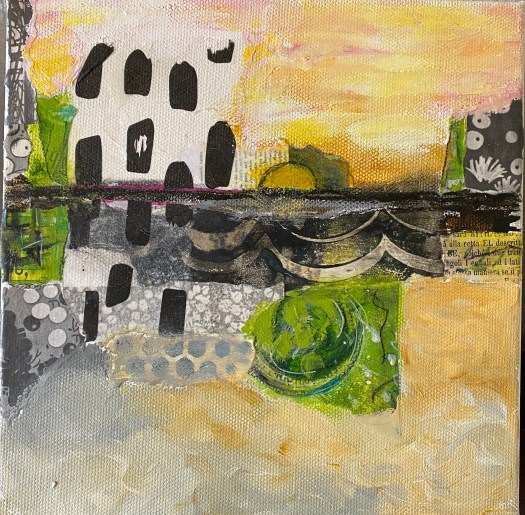Abstract landscape: acrylic and collage on deep canvas. 8x 8. NFS