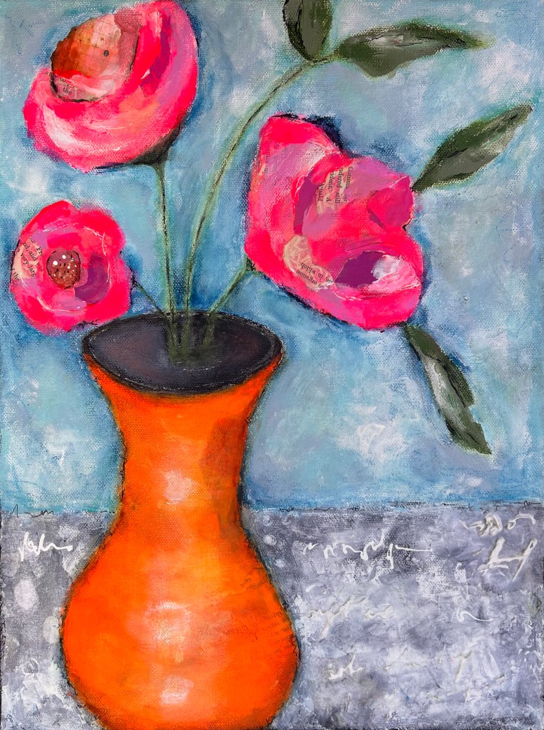 Acrylic and collage on deep canvas; 12 x 16. SOLD
