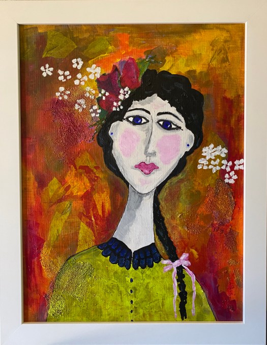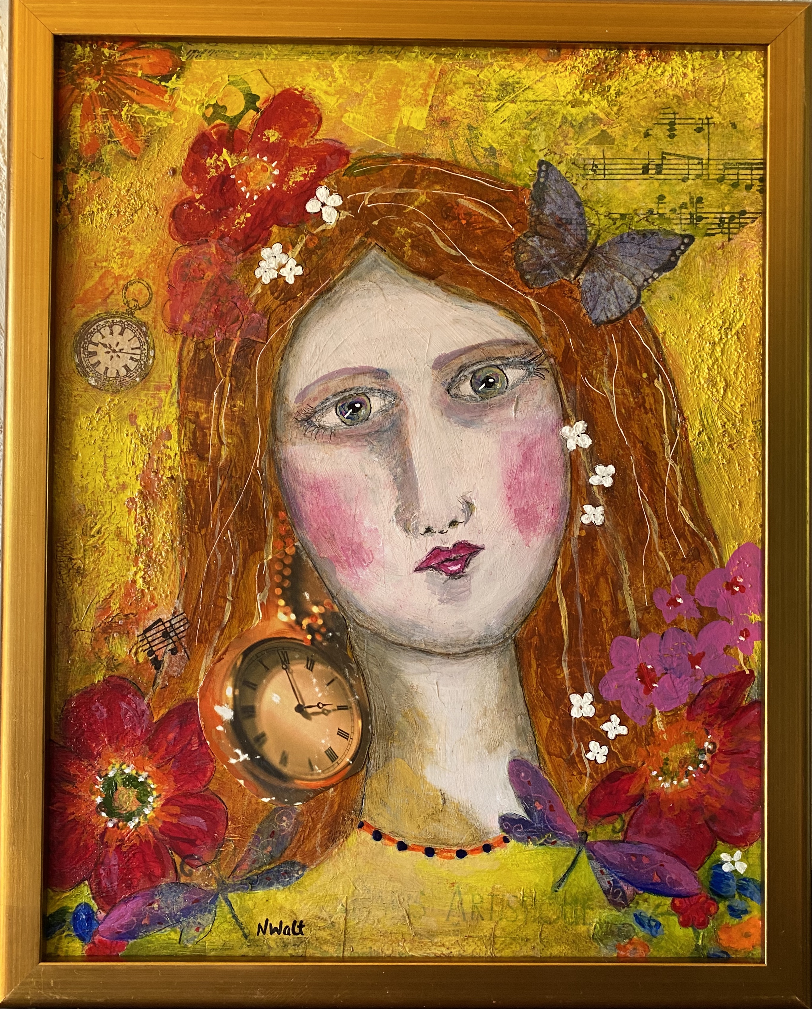 Mixed Media: acrylic and collage on wood panel. 11 x 14, framed. SOLD