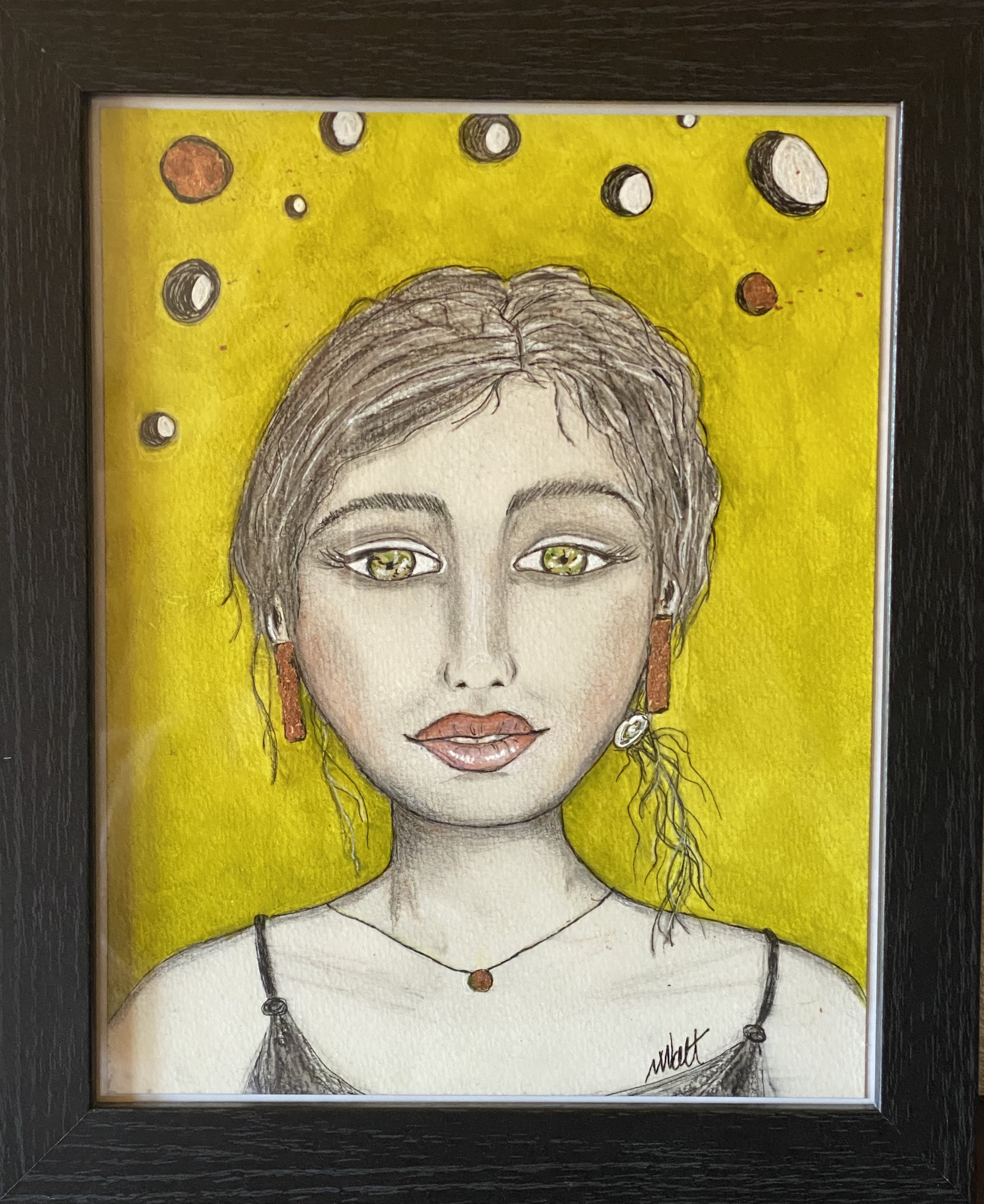 Acrylic, collage, and stabilo on canvas panel. 11 x 14, framed. $200.