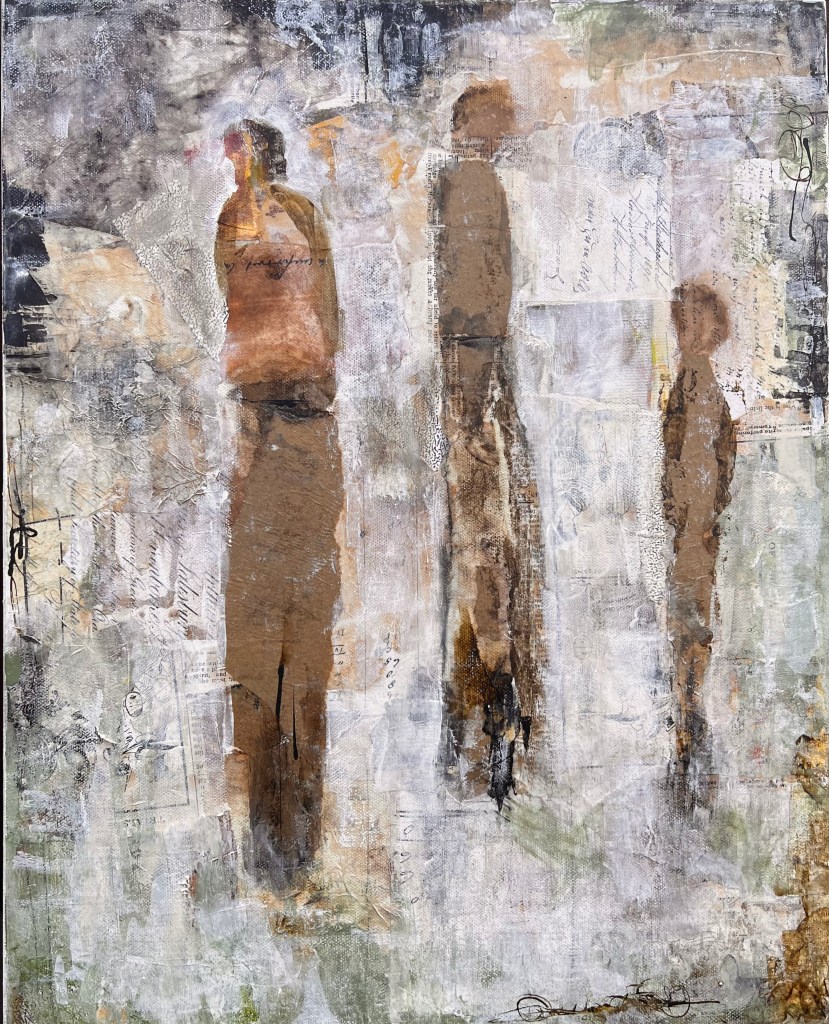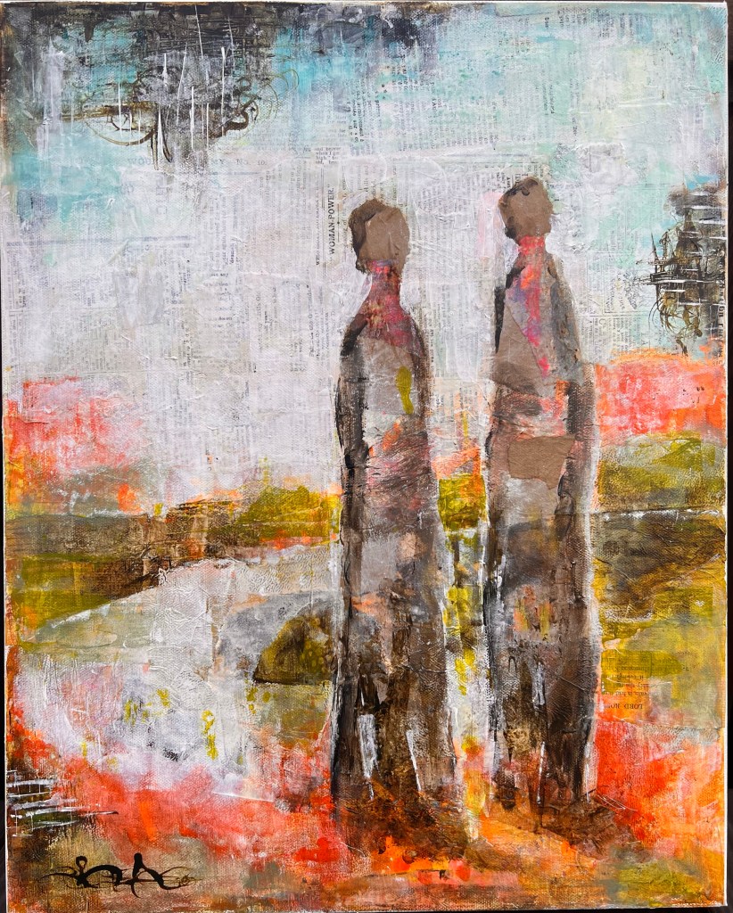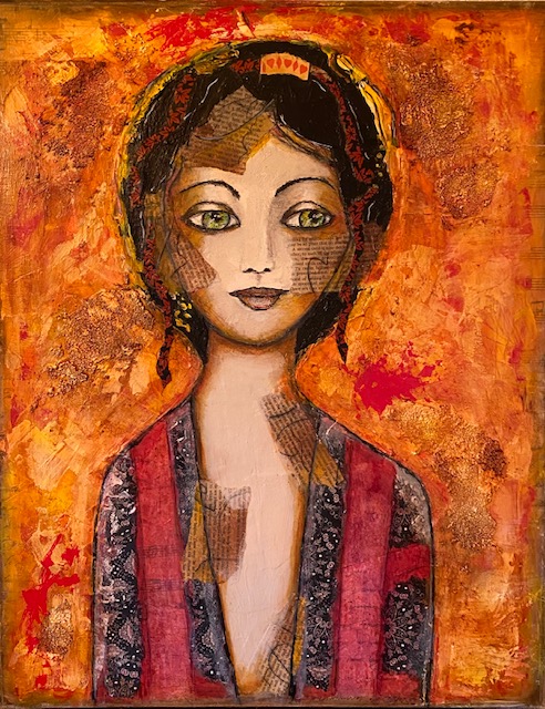 Mixed Media: acrylic & collage on canvas. 16 x 20.