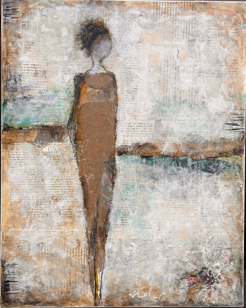 Mixed Media: acrylic & collage on canvas. 16 x 20. SOLD