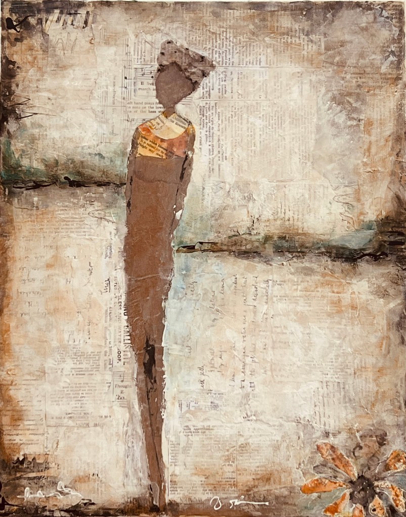 Mixed Media: acrylic with collage on canvas. 12 x 16. Original SOLD. Canvas reproduction available.